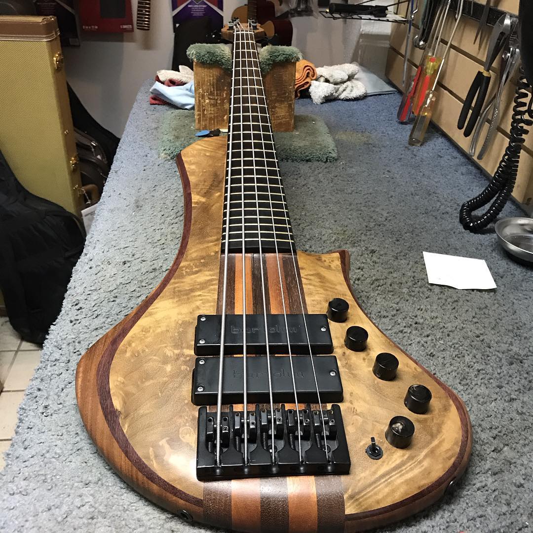 Like other wood instruments, guitars, bass guitars, and other fretted instruments need periodic maintenance to ensure good tone, intonation, and playability. Adjustments are made to the neck, bridge, saddles, and nut to maintain good action and proper intonation. We also do fretwork, wiring, pickup installation, cracks and breaks, anything that your guitar may need. Get your guitar or bass looking and playing its best at Brindley's. Estimates are always free.